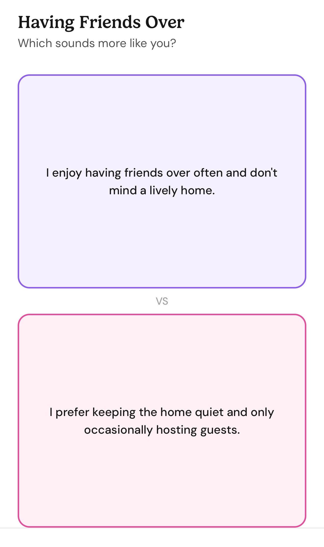 I have had 18 different roommates in my life and I’ve moved 10 different times. I know the toll it takes on a person to change their living situation, because I’ve experienced that toll so many times. For me, where I live is my sanctuary. That’s why it matters to me to build this app to intentionally help people find the best living situations. It’s my promise to you that I will help you get there.